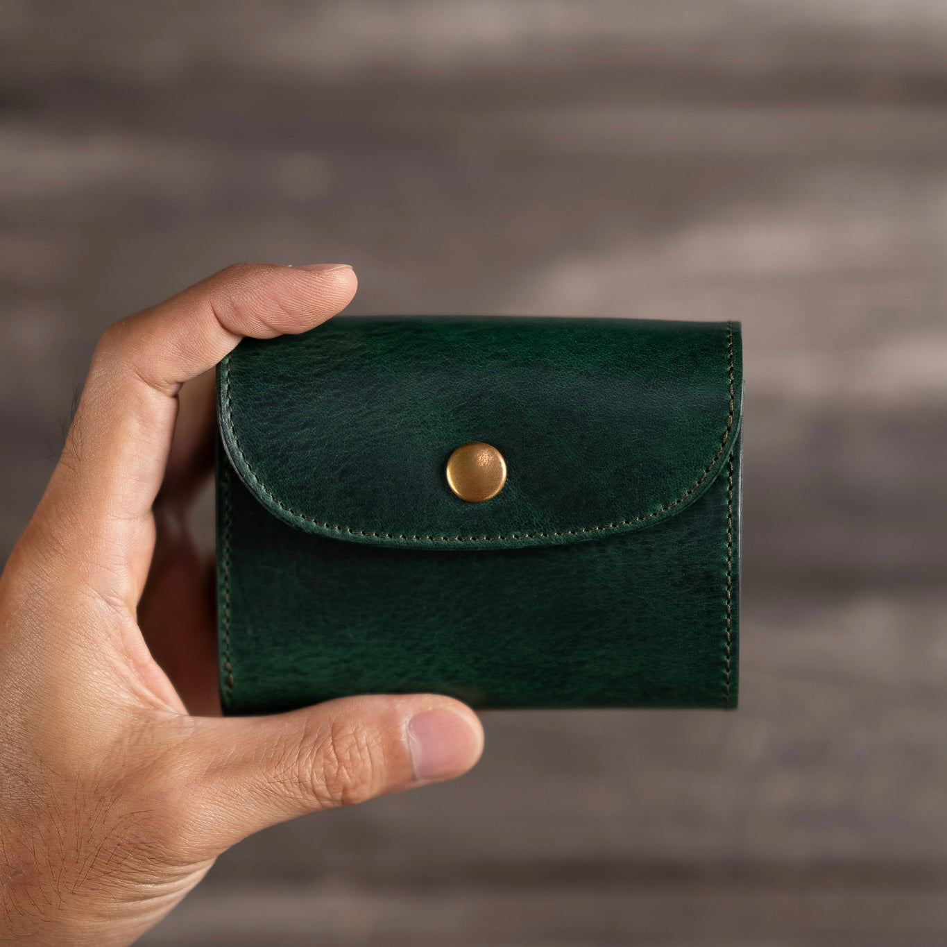 Eine dreifach gefaltete Brieftasche mit abgerundeter Form, die bequem in der Hand liegt.。