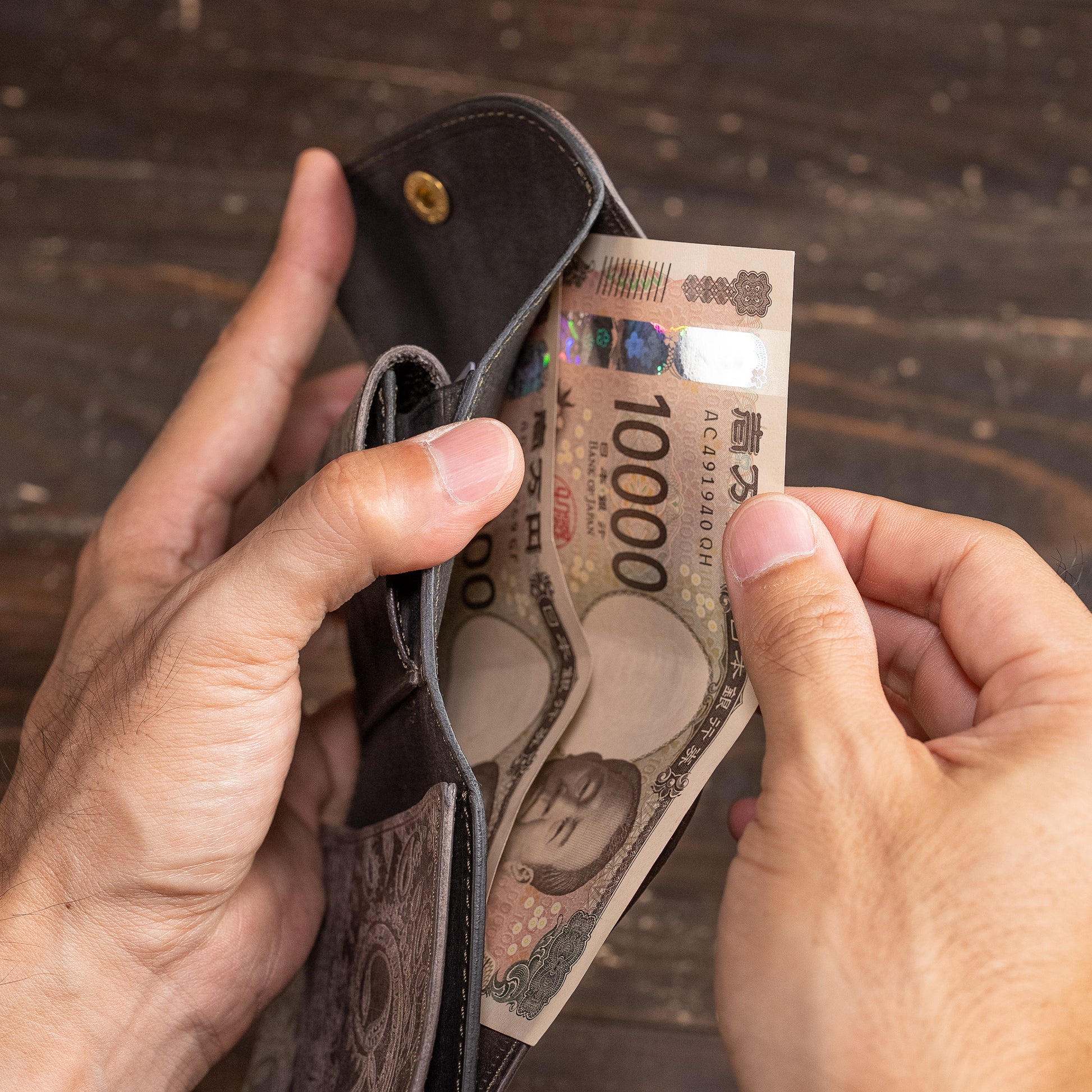 Dies ist eine dreifach gefaltete Geldbörse aus dem limitierten Leder 【Paisley】.