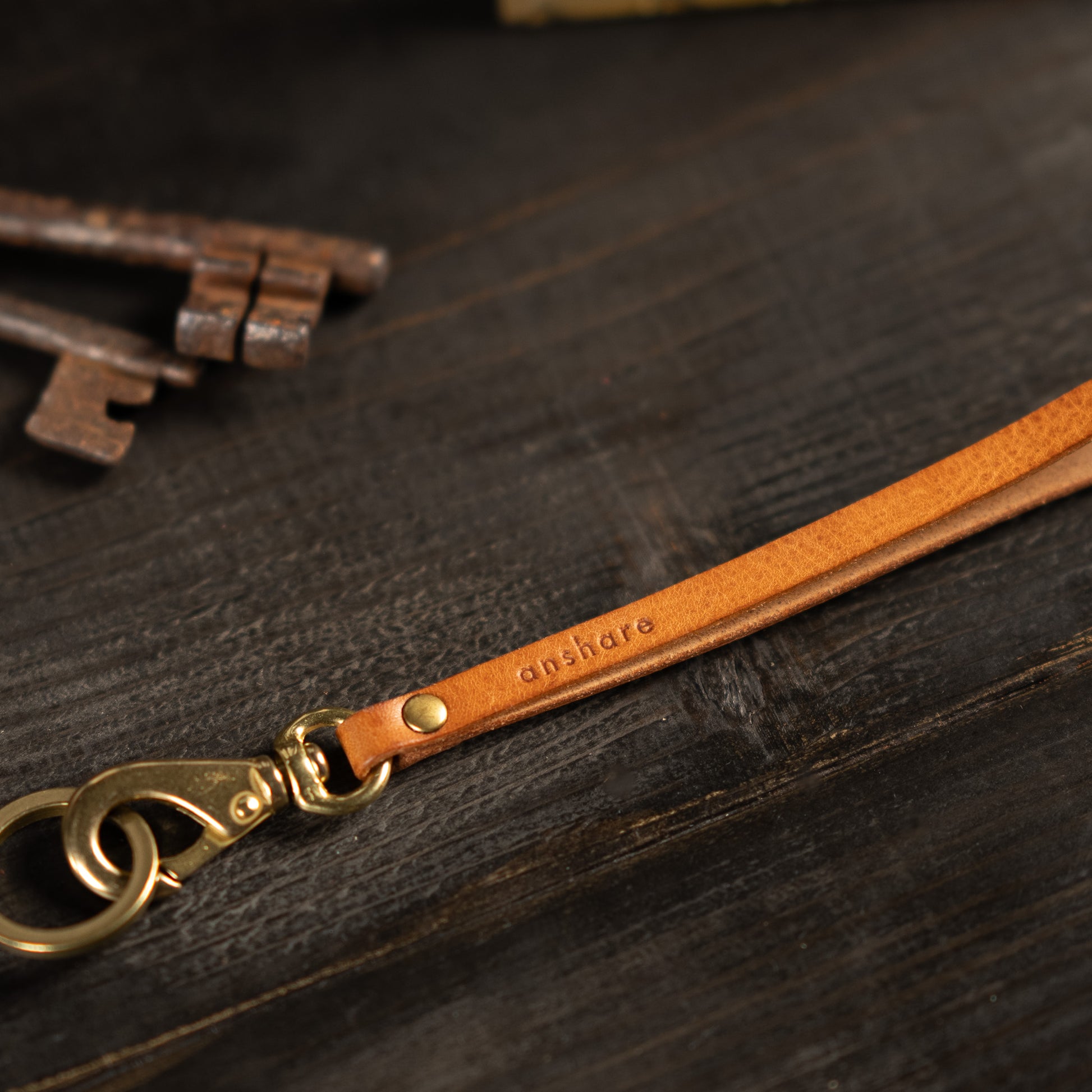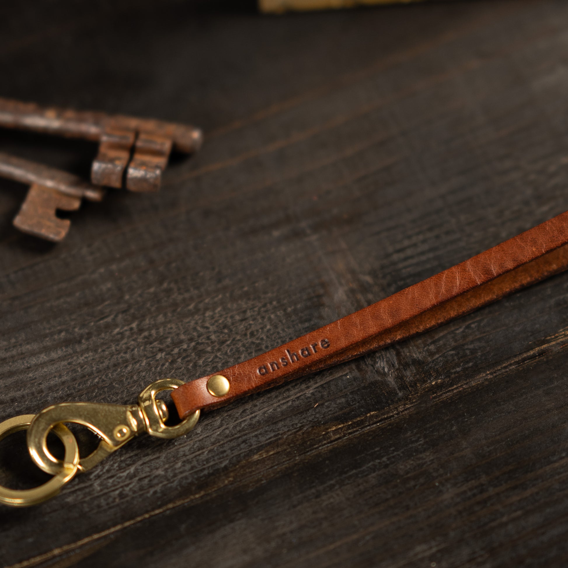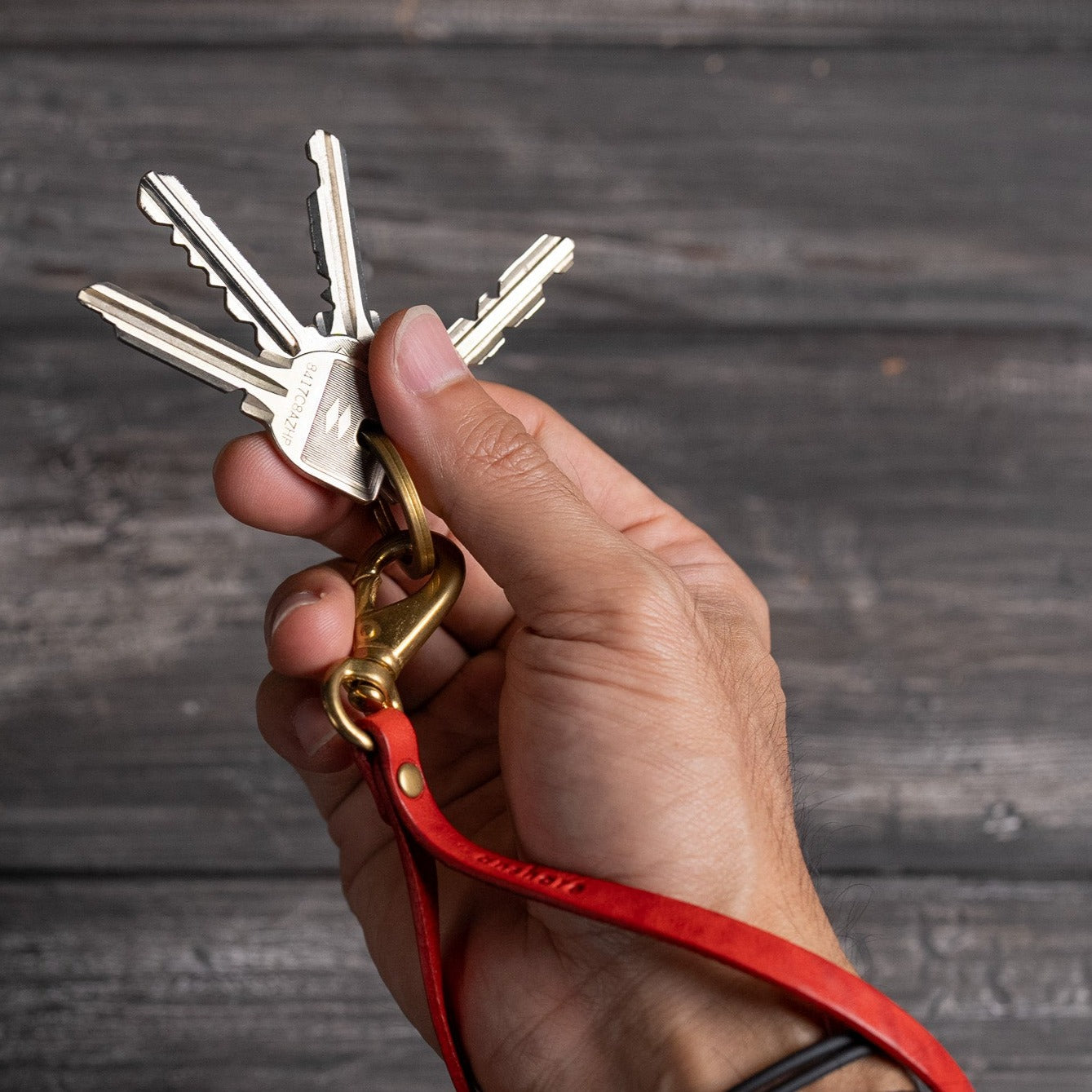 Ein einfaches Design mit einem Schlüsselring an einem Lederband.
