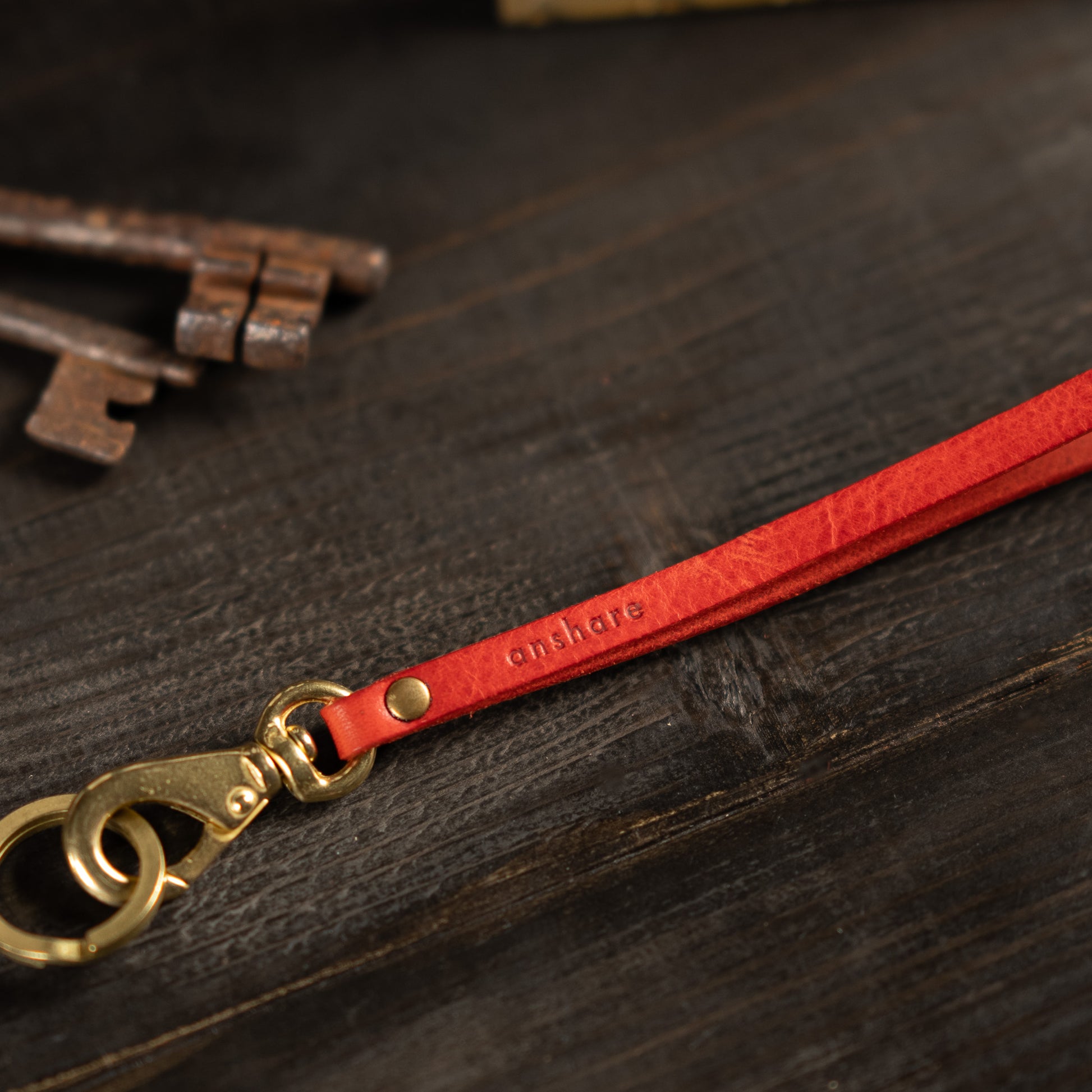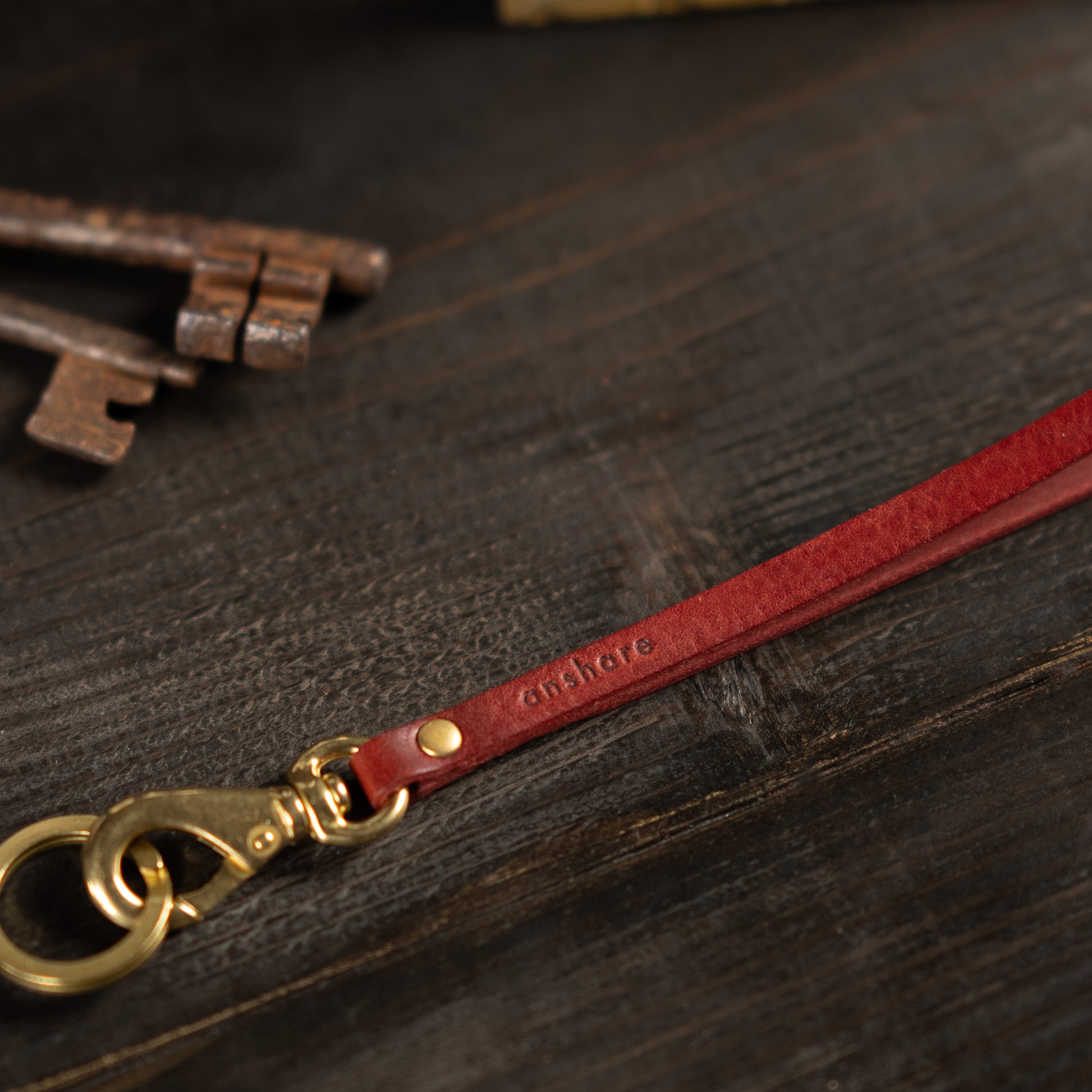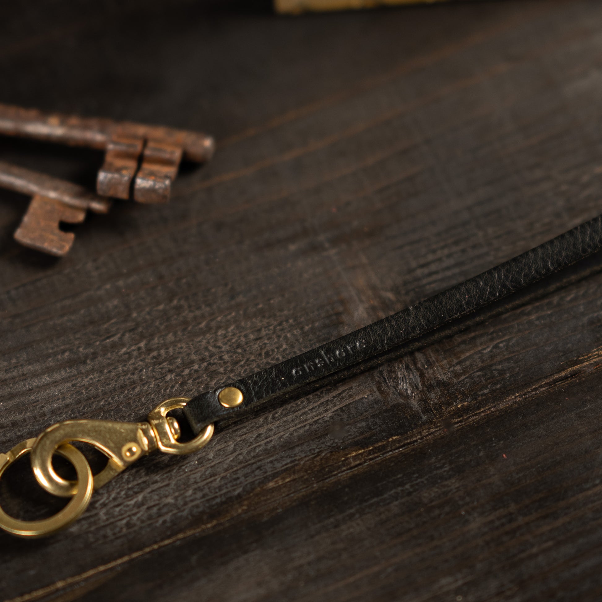 Ein einfaches Design mit einem Schlüsselring an einem Lederband.