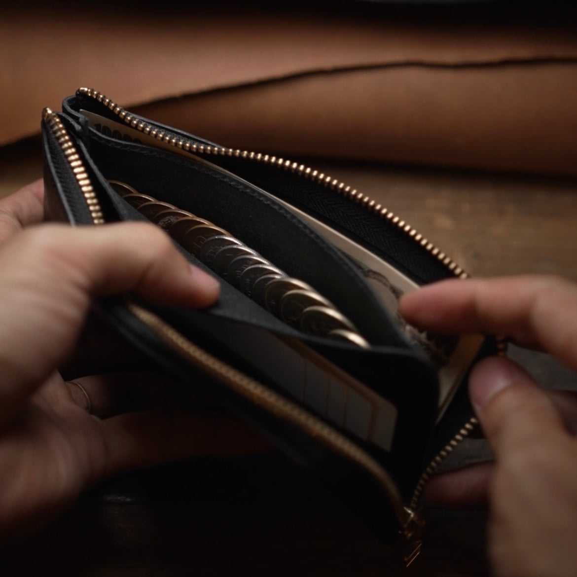 Da Münzen oben und Karten unten platziert werden, gibt es weniger Überlappungen und das Design wird nicht sperrig, selbst wenn Sie viel aufbewahren.ンです。
