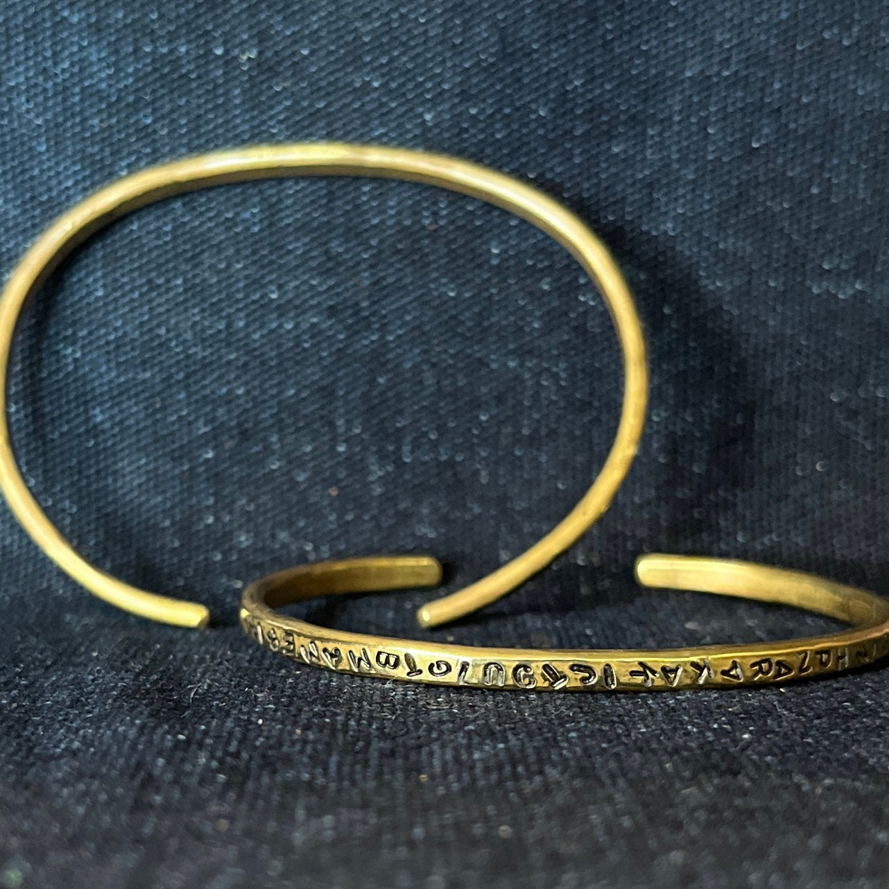 The diameter of the brass wire is 3 mm, and the design is randomly engraved with alphabets.