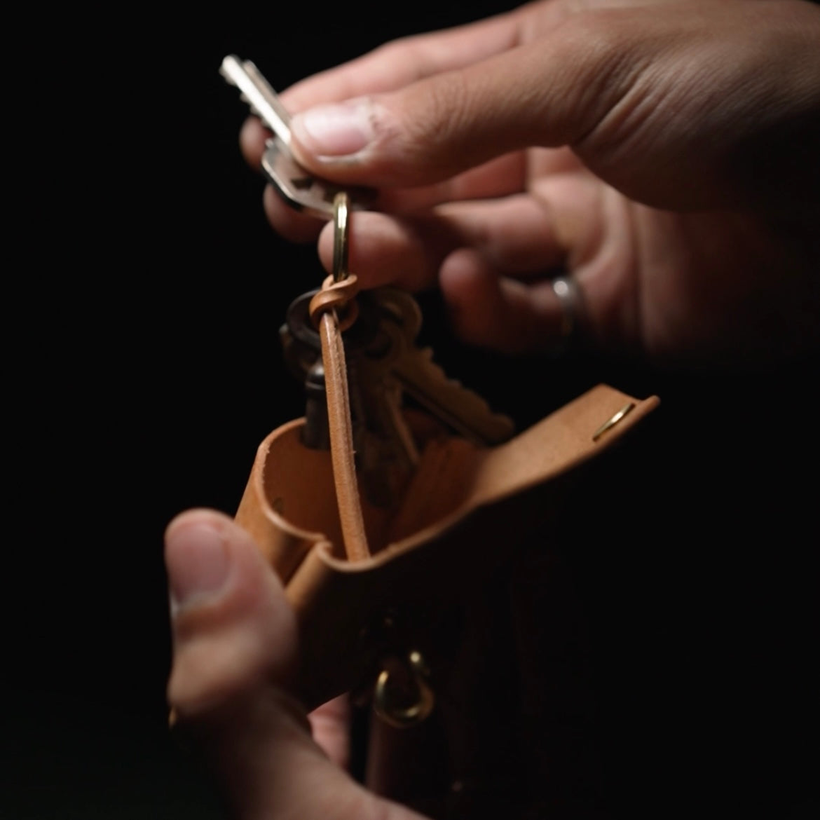 The string of the key ring connects the outside and inside, making it easy to put in and take out by pulling.