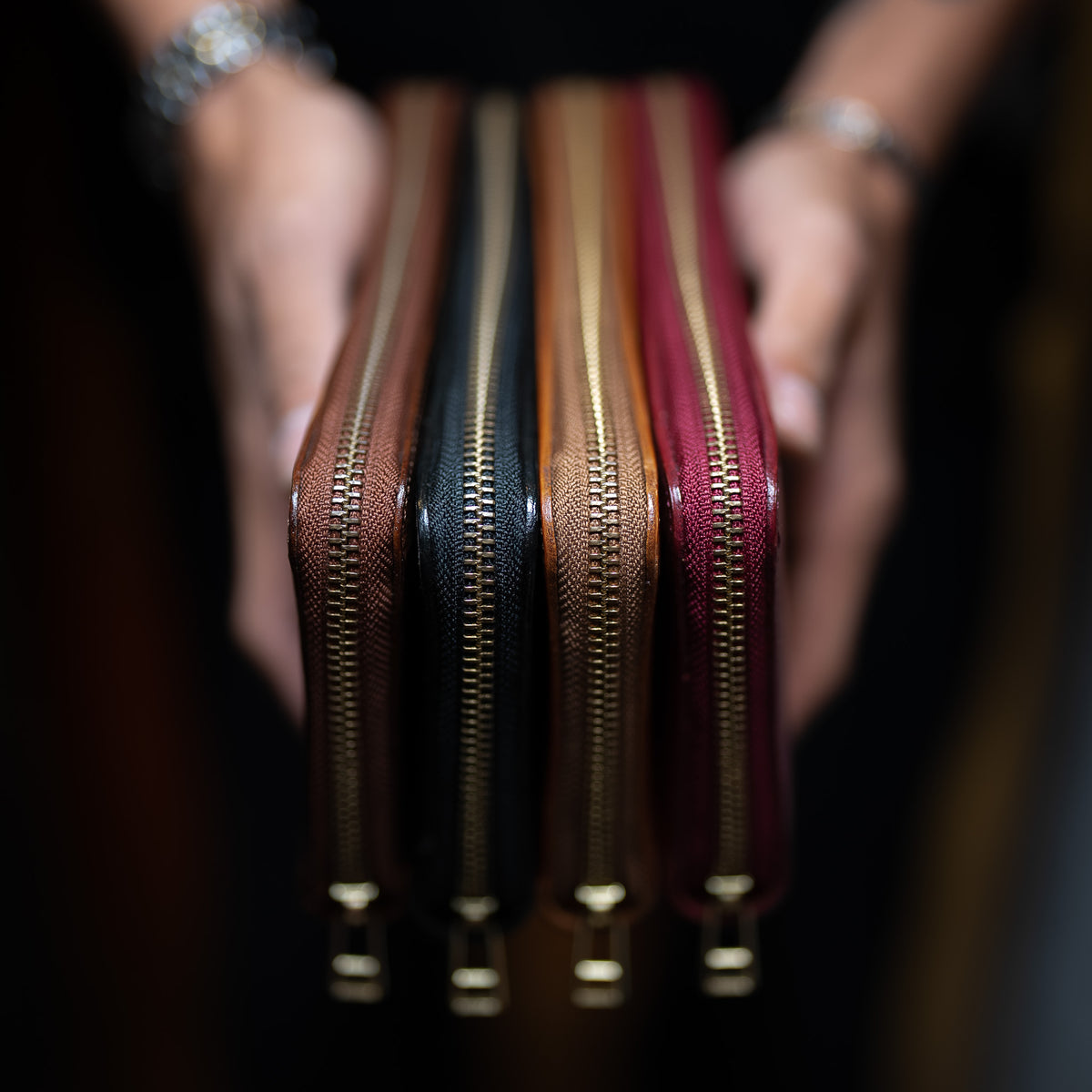 Starting with small items like wallets and key cases, we also produce larger items such as bags.