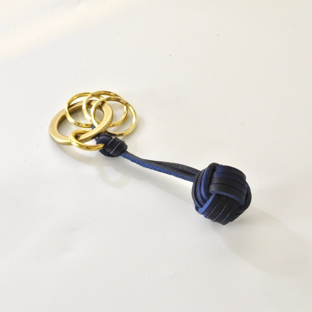 Este llavero en forma de bola está hecho de cuerda de cuero tejida con cuidado.