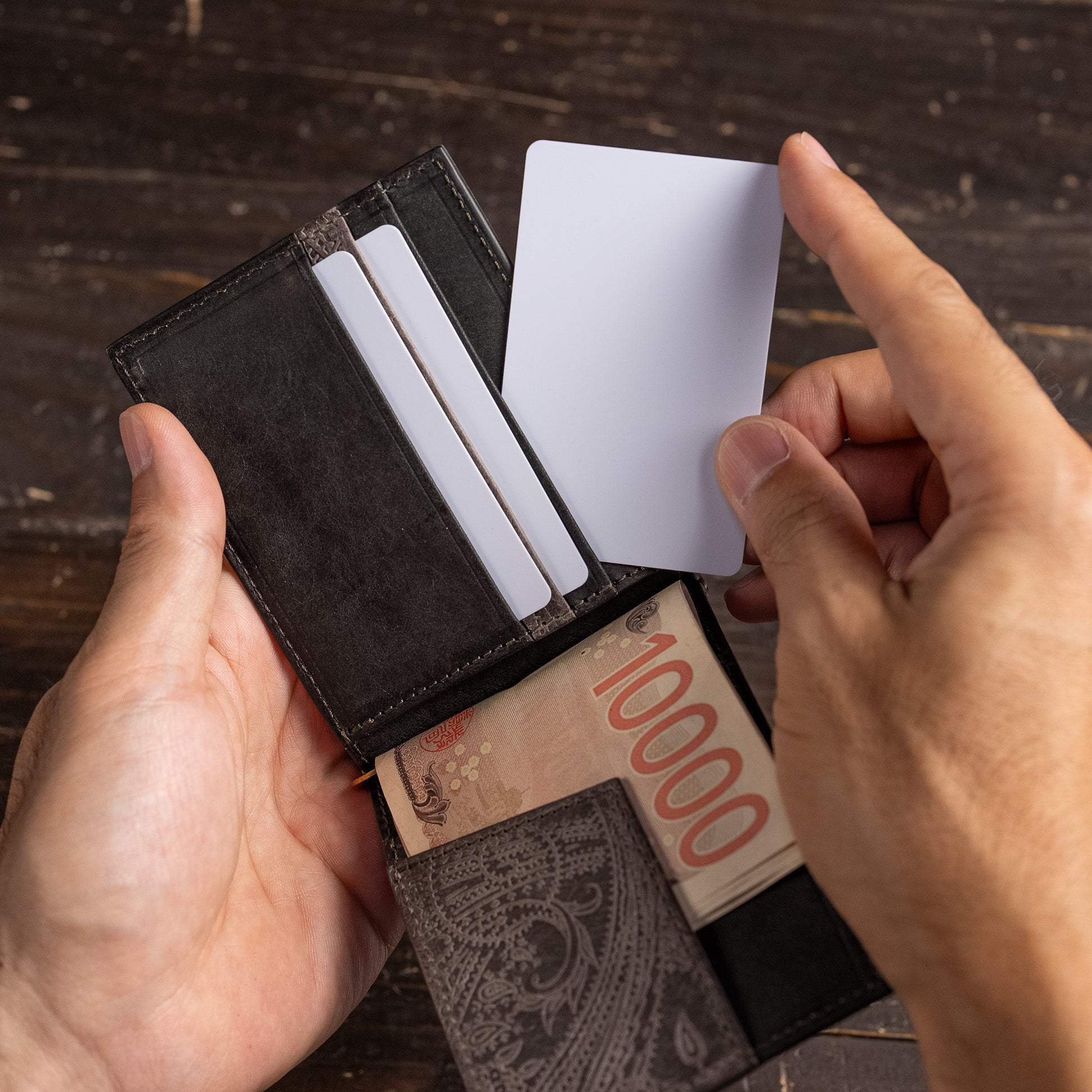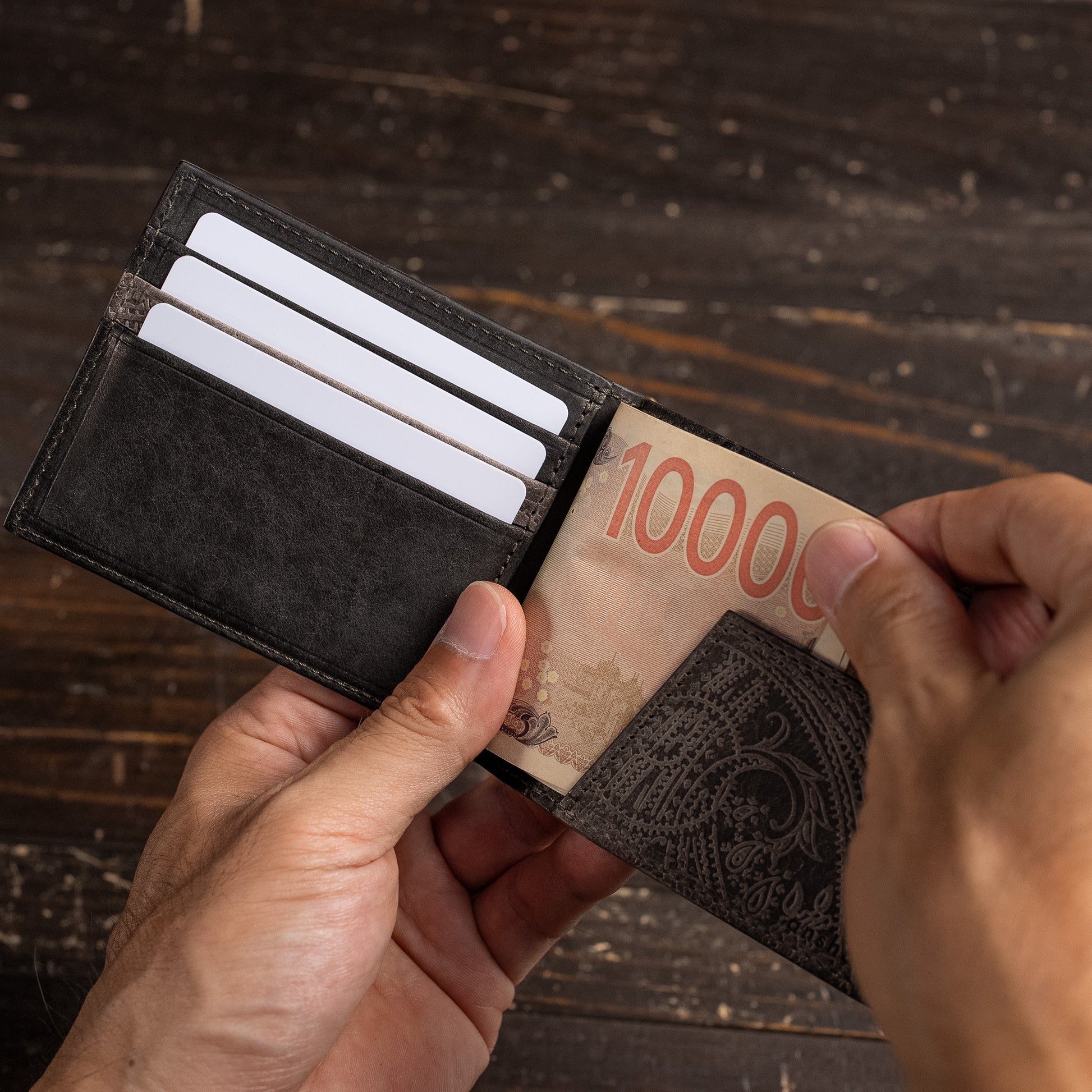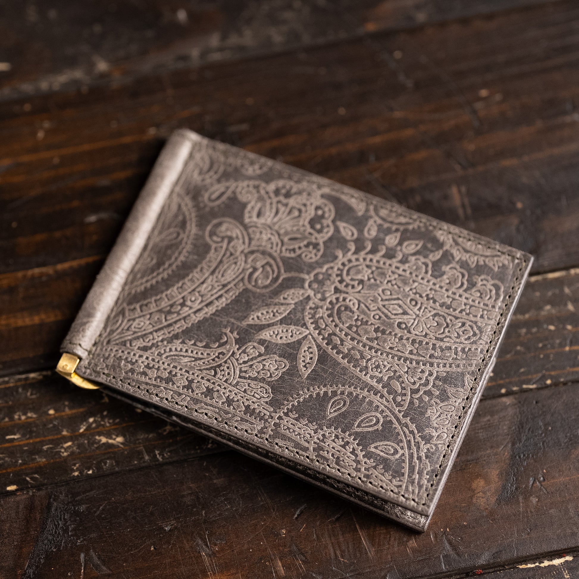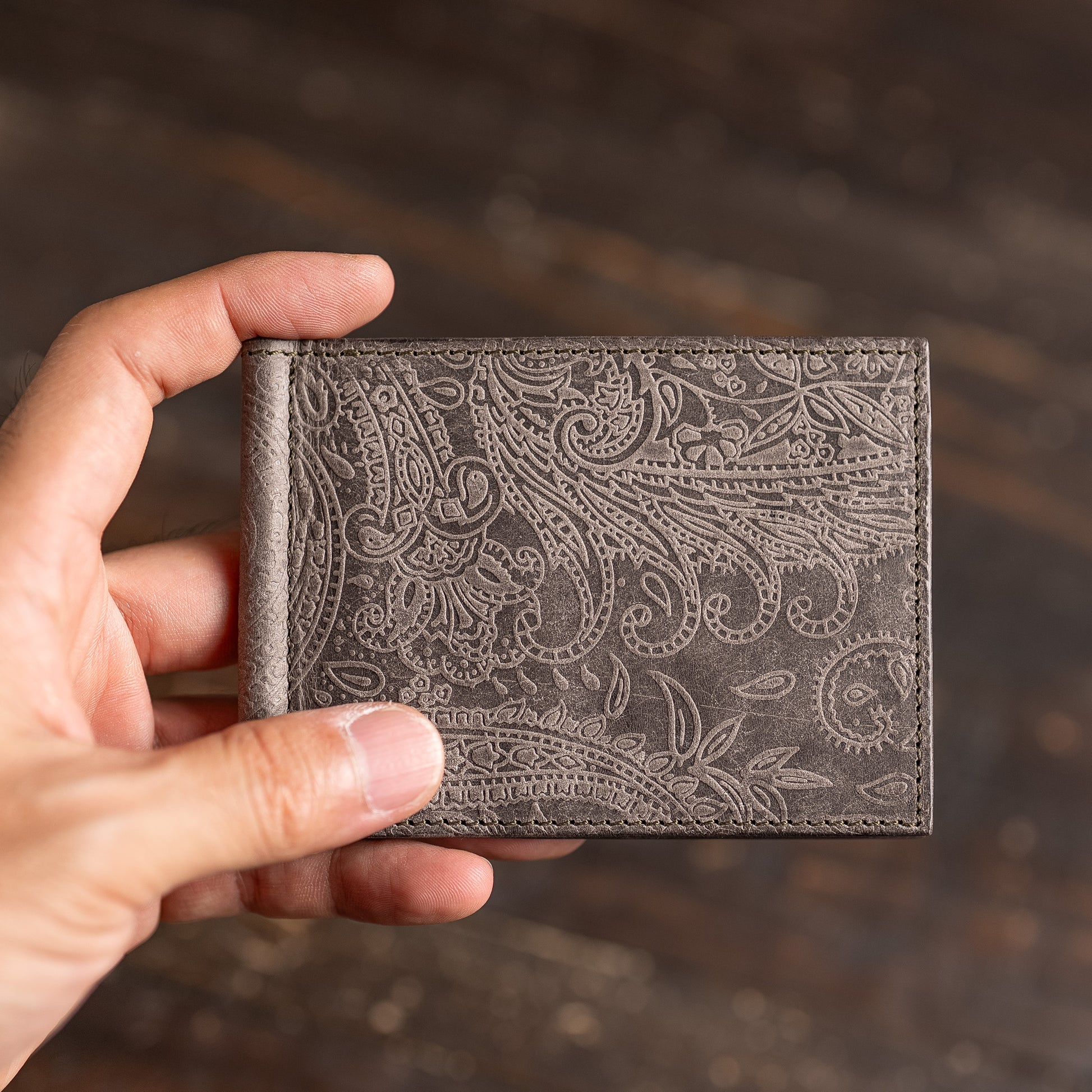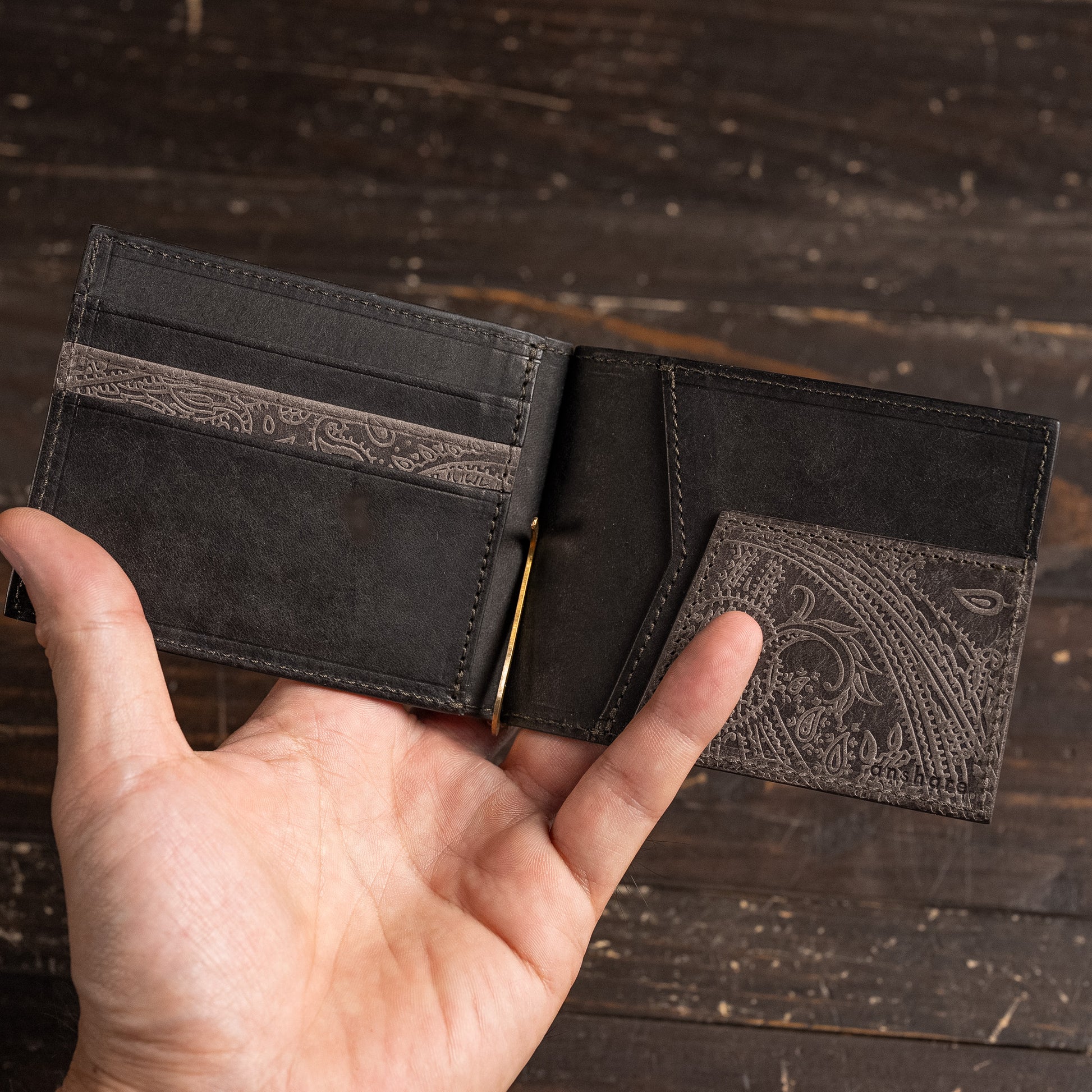 Il s'agit d'un porte-monnaie fabriqué en cuir exclusif « Paisley ».