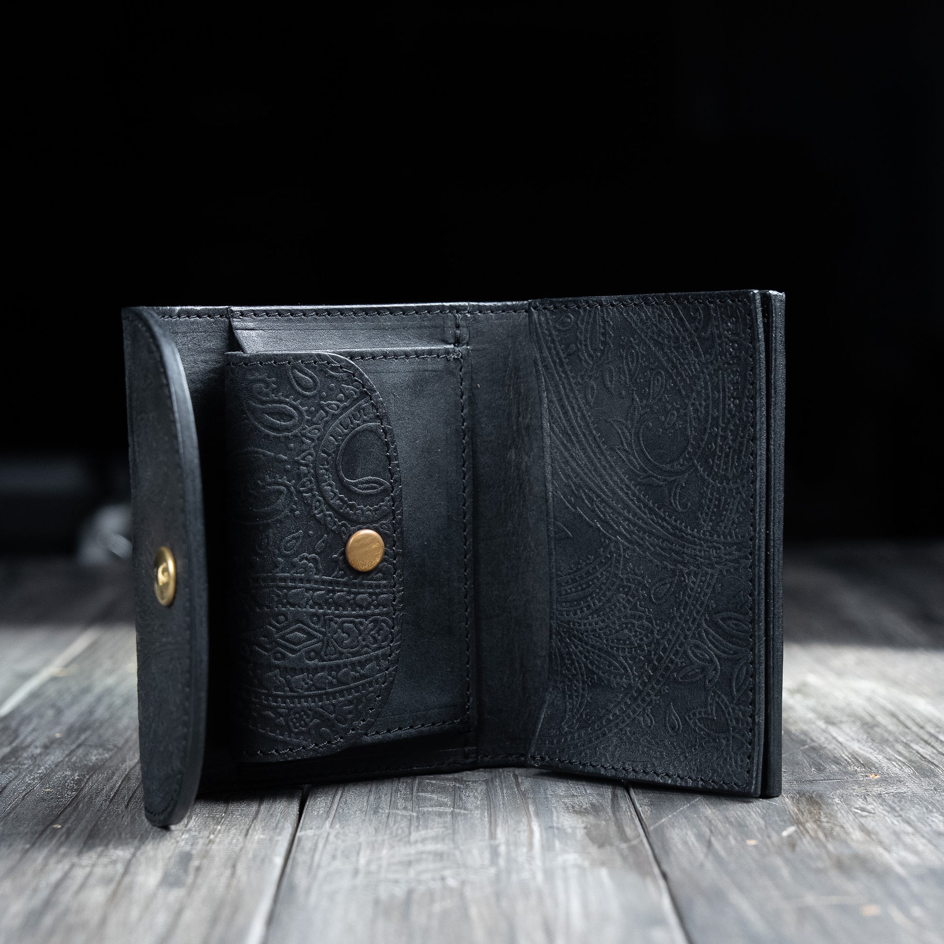 Portafoglio pieghevole in tre parti realizzato con pelle esclusiva 【Paisley】