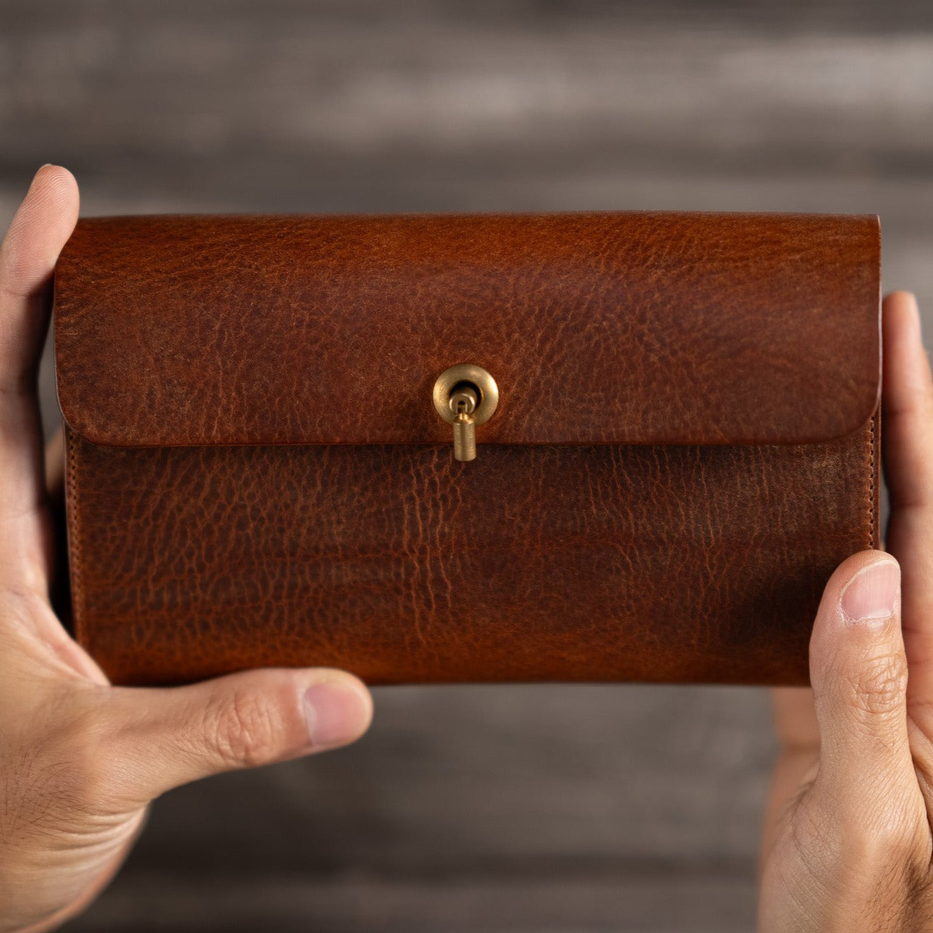 真鍮製の金具は使うほどにアンティークな風合いへと変化していきます。革の経年変化と共に楽しんでいただける素材です。