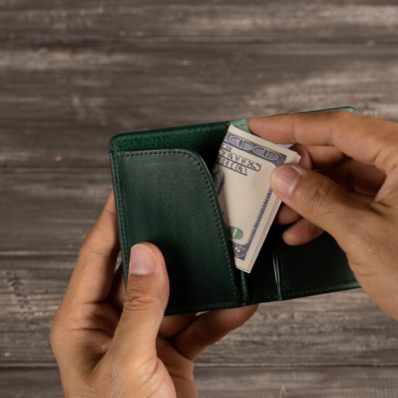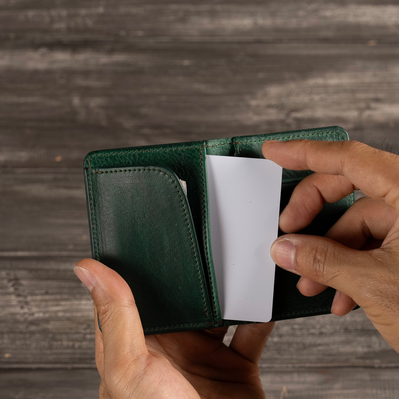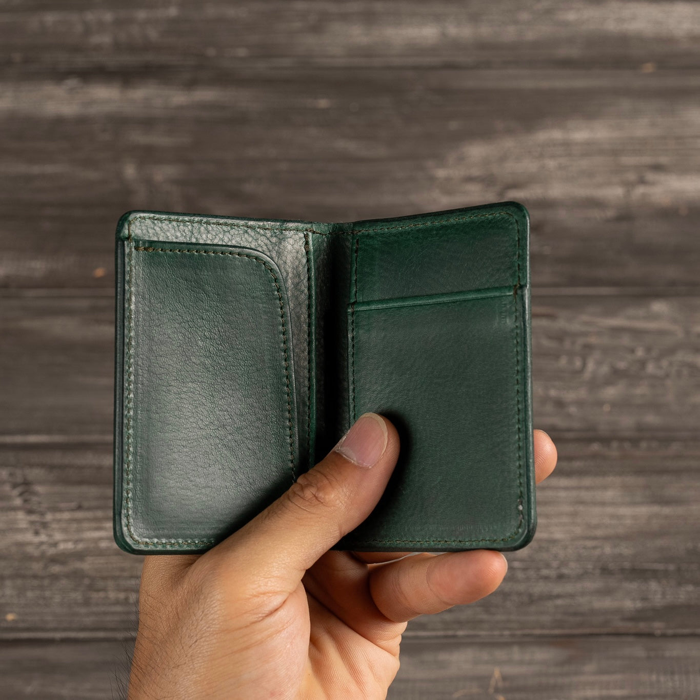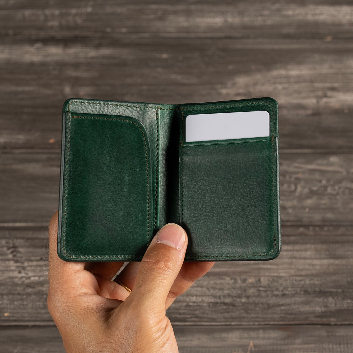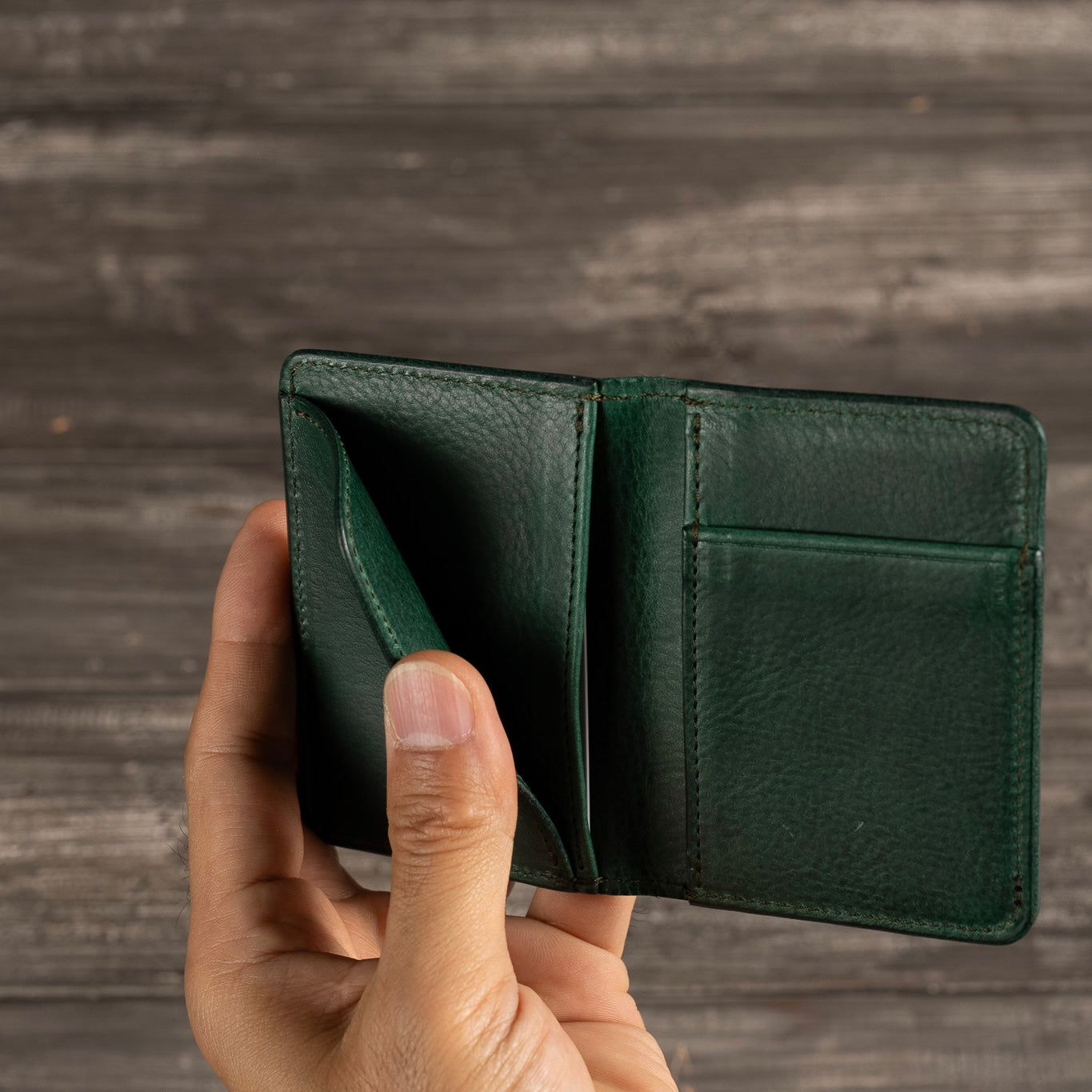 L字に縫い付けられたポケットには三つ折りにしたお札が収納可能です。
