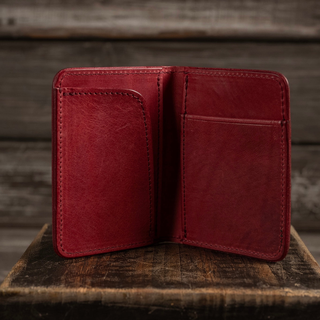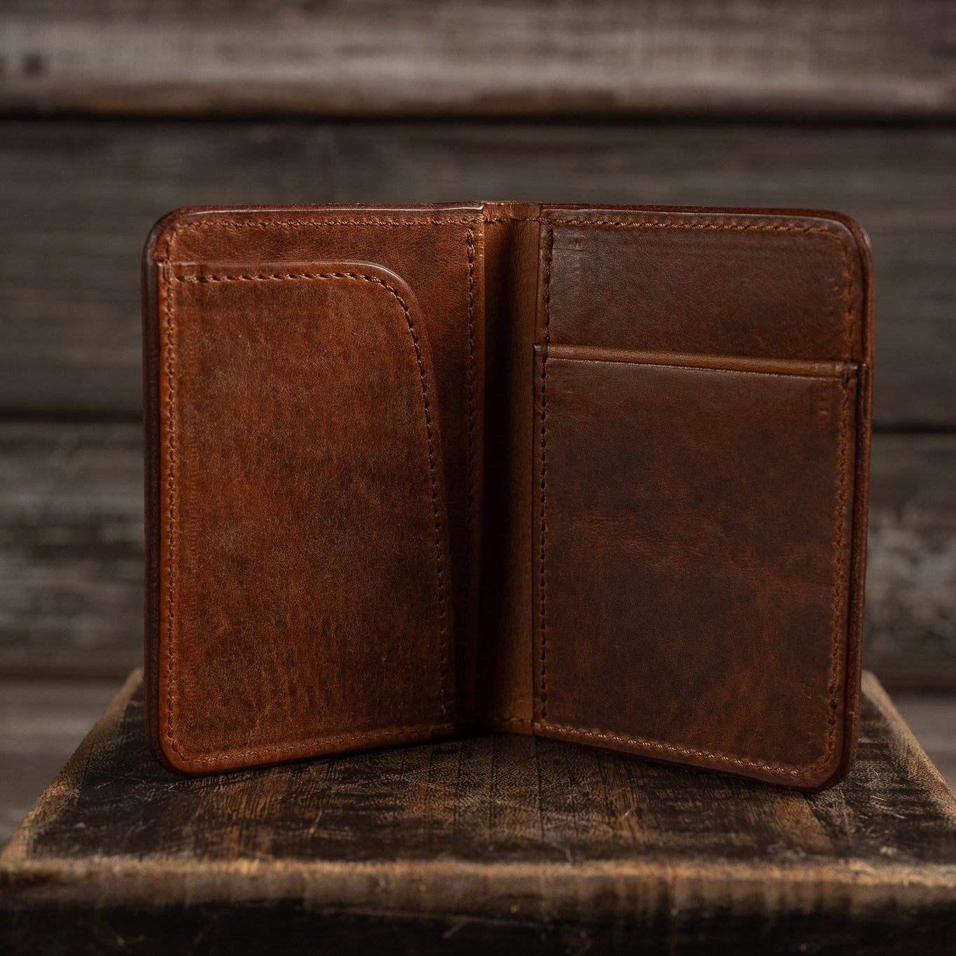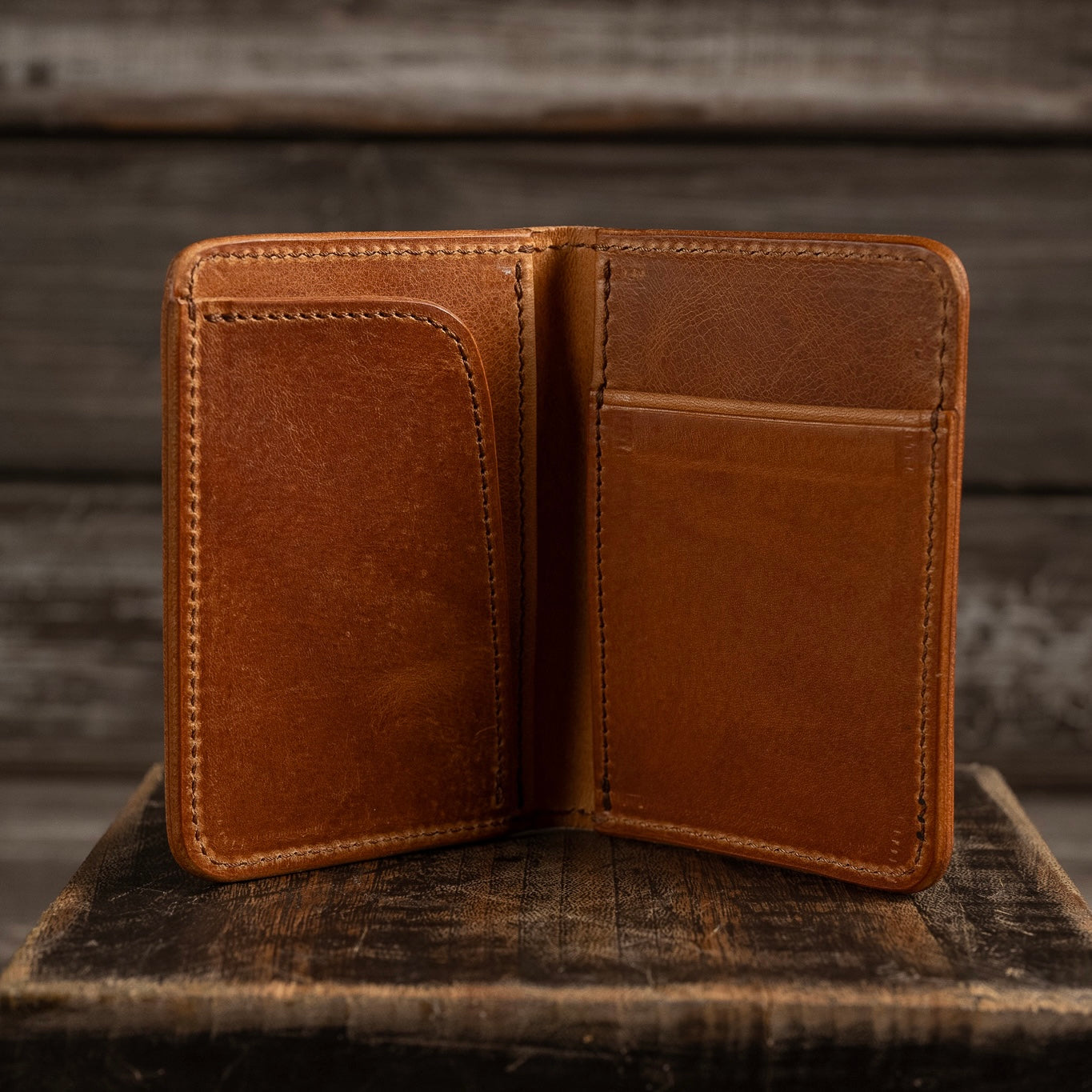 イタリアのサンタクローチェ地方で作られているアマゾニアという牛革を使用しています。植物タンニン鞣しで染料仕上げ、そしてバケッタ製法により油分がしっかり入った革なので、使い込むほどに味わい深い色に変化し、自然な艶が出てきます。経年変化を存分に楽しんでいただける革です。