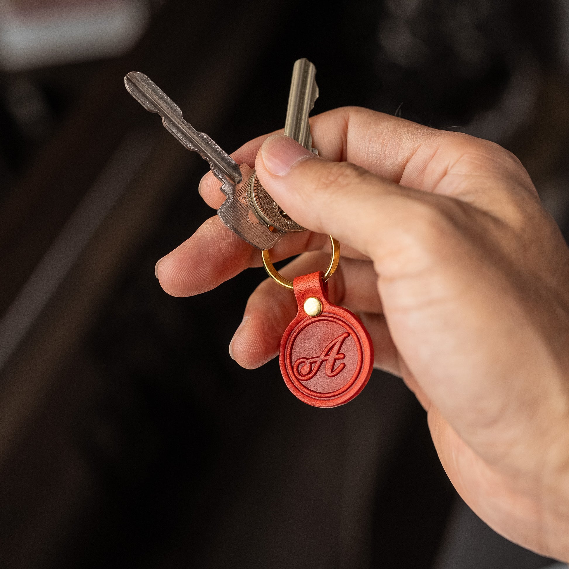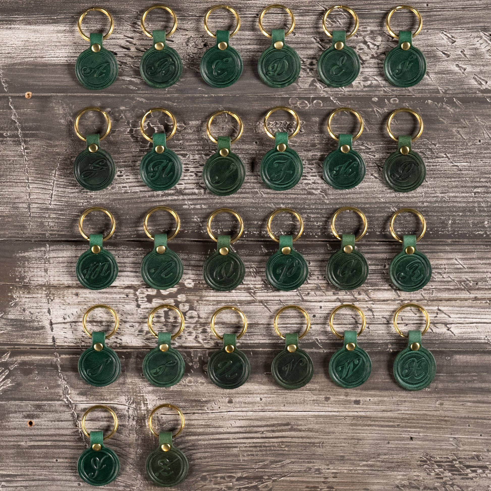The leather features an initial engraved like a wax seal, giving a subtle touch of uniqueness.
