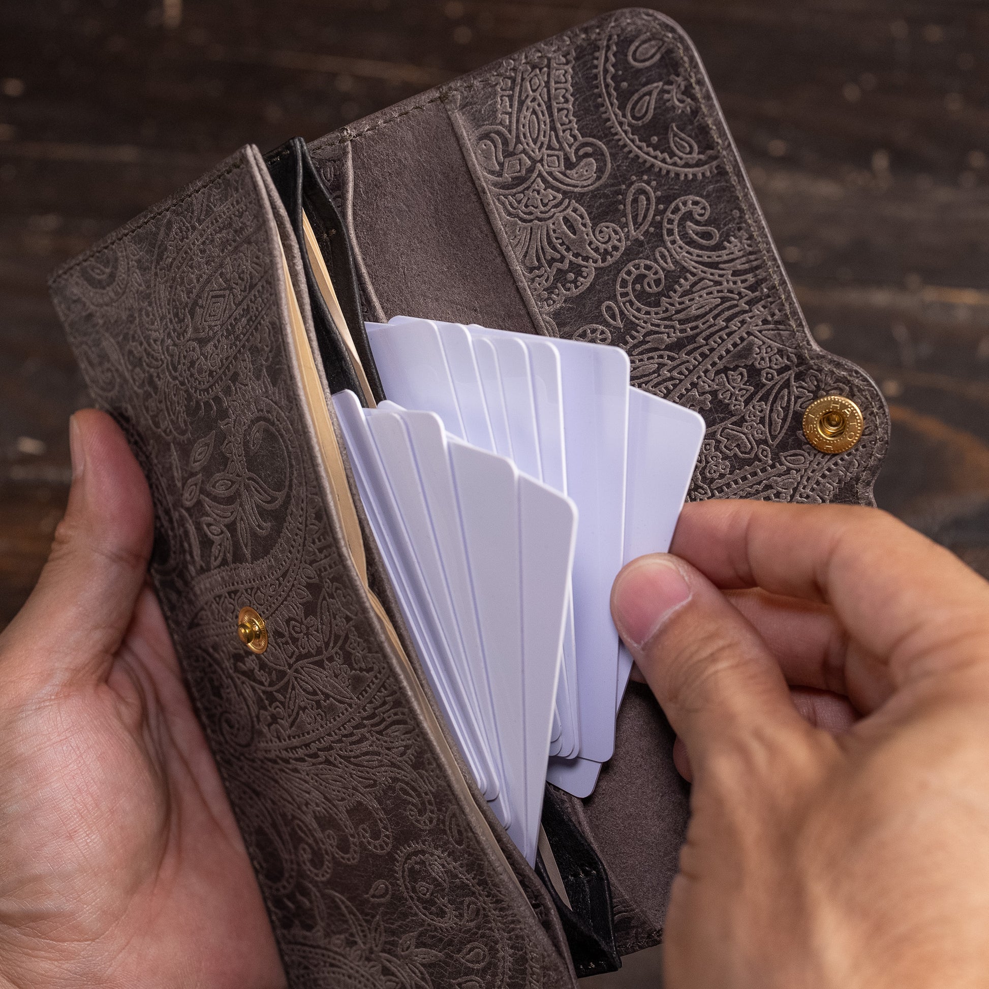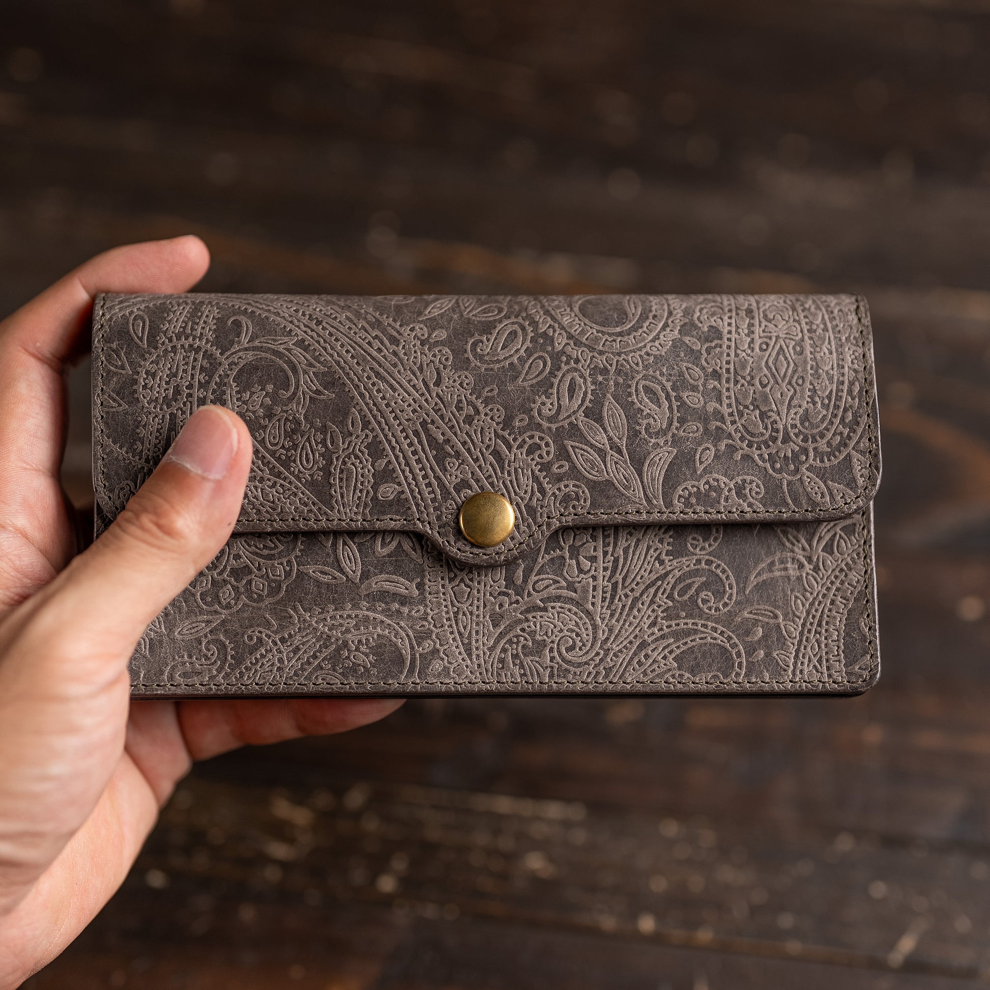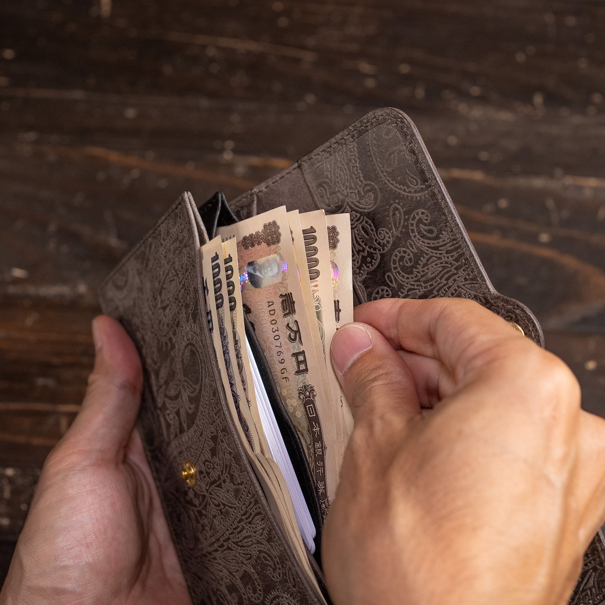 限定革【Paisley】で製作したジャバラロングウォレットです