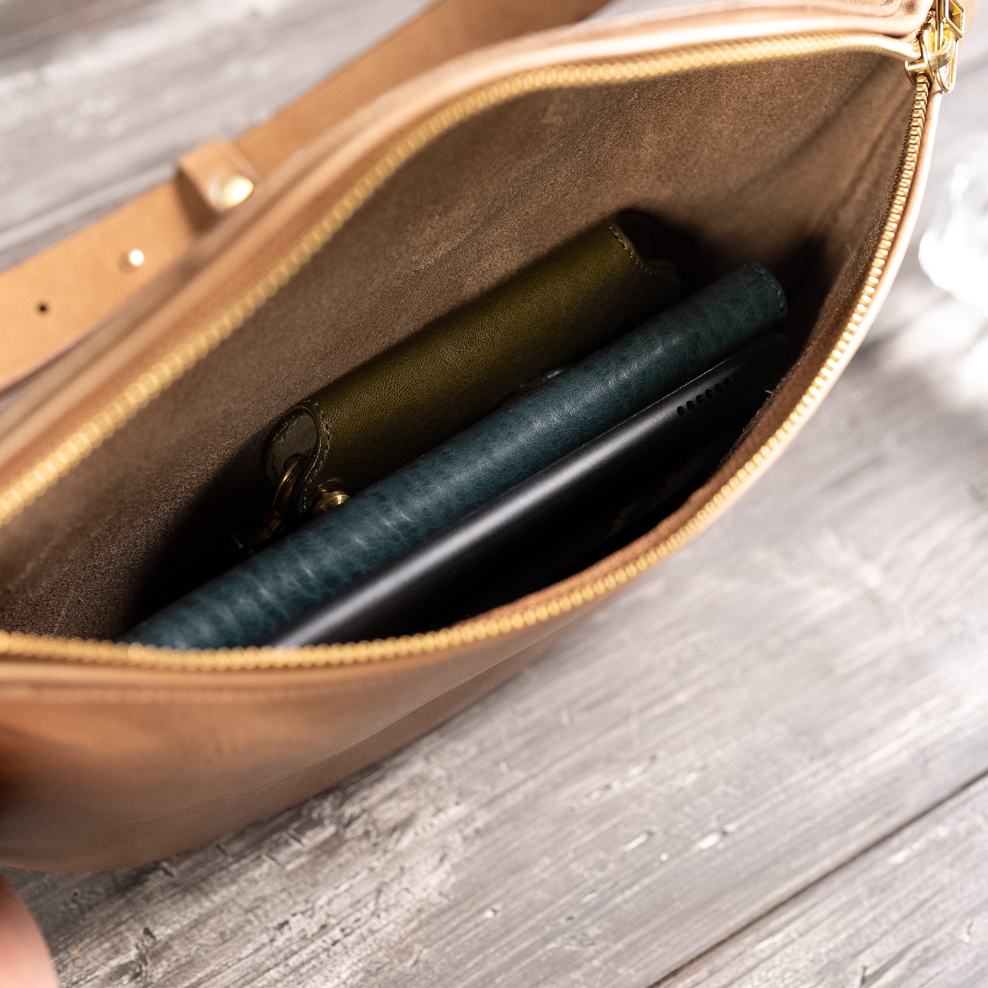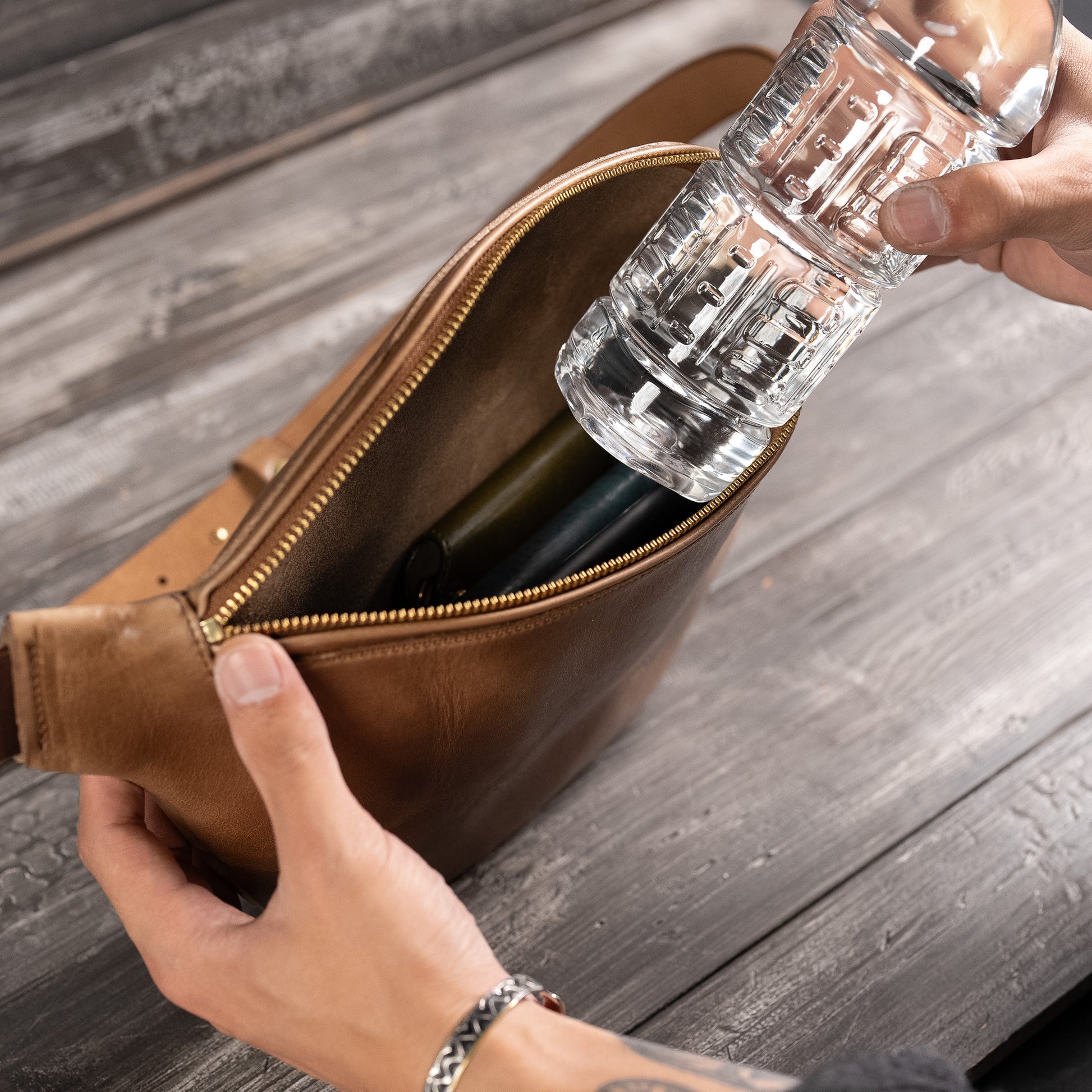 本体の上側にファスナーがついている開き口なので簡単に開いて出し入れできます。