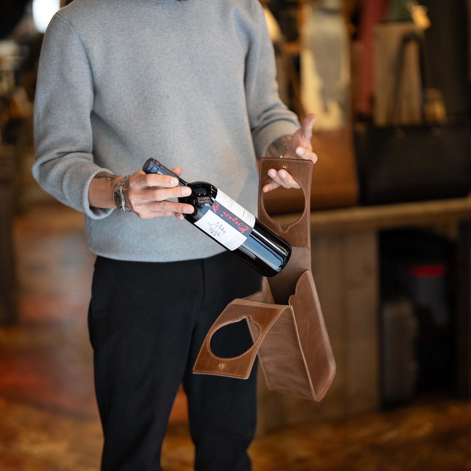 ホームパーティやお祝いの席に行く際、ワイン専用のバッグに入れて持って行く。