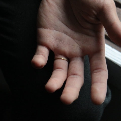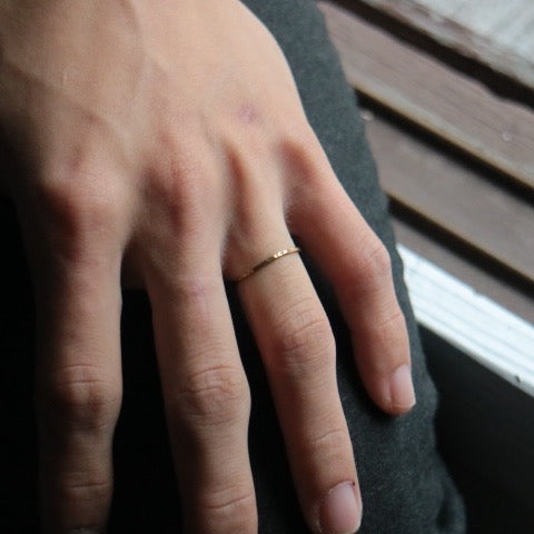 繊細な指輪に小さな叩き模様を施した細めのリングです