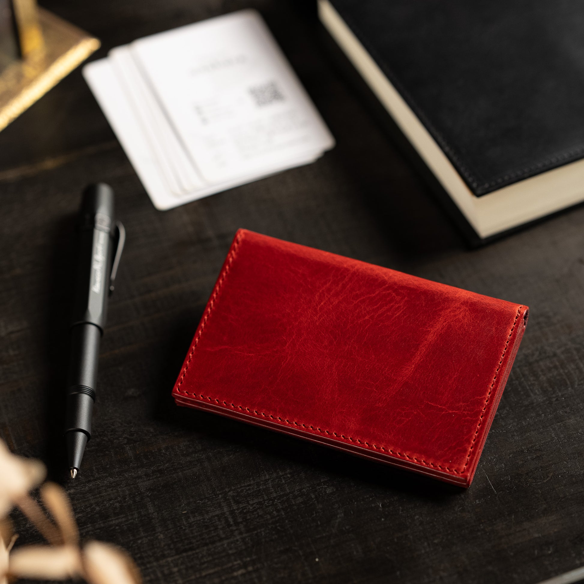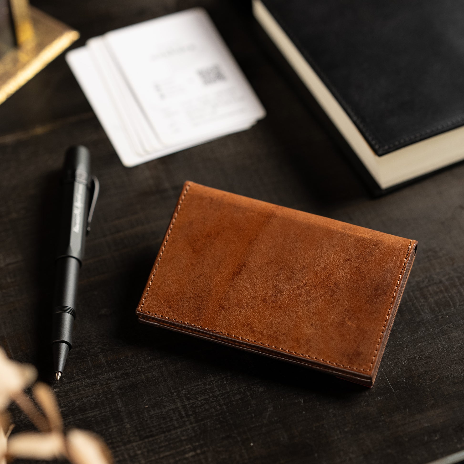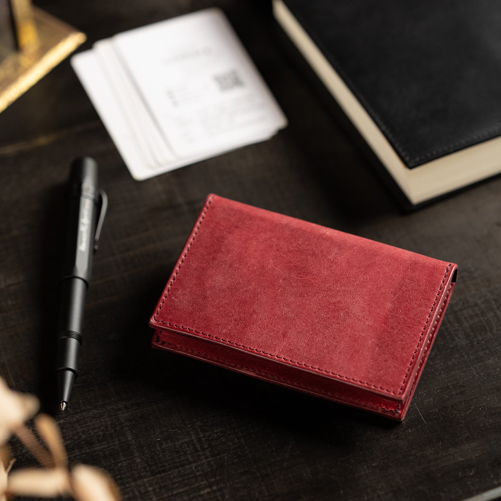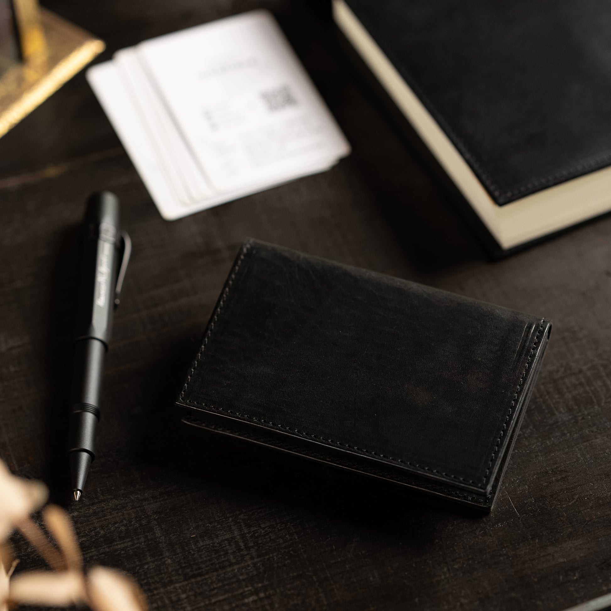 刻印の入ったメインポケットが一つと反対側にサブのポケットが二つでご自身の名刺といただいた名刺を仕分けて収納できます。