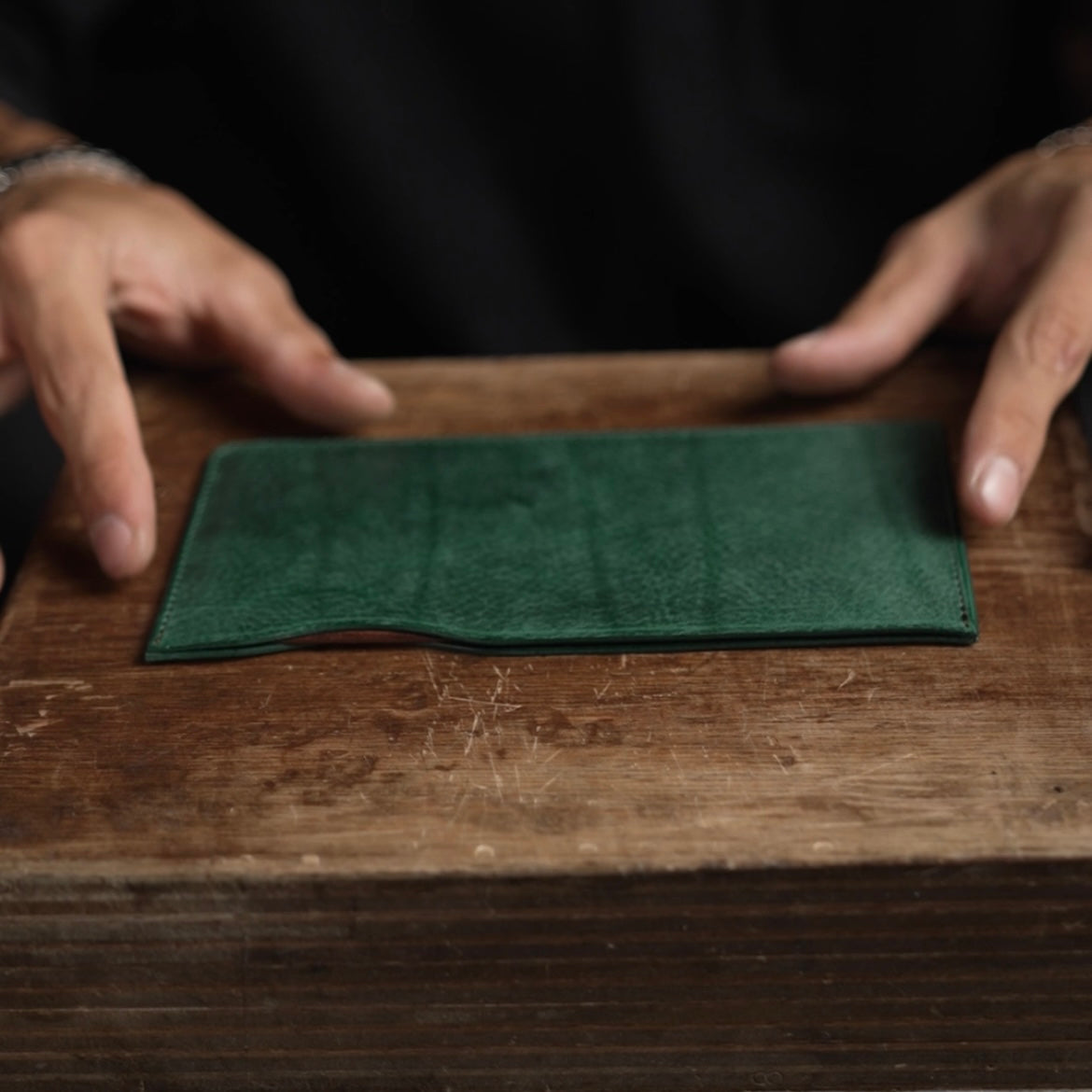 スムーズに出し入れできるようにするため、全てのパーツで革の両面貼りを施しています。
