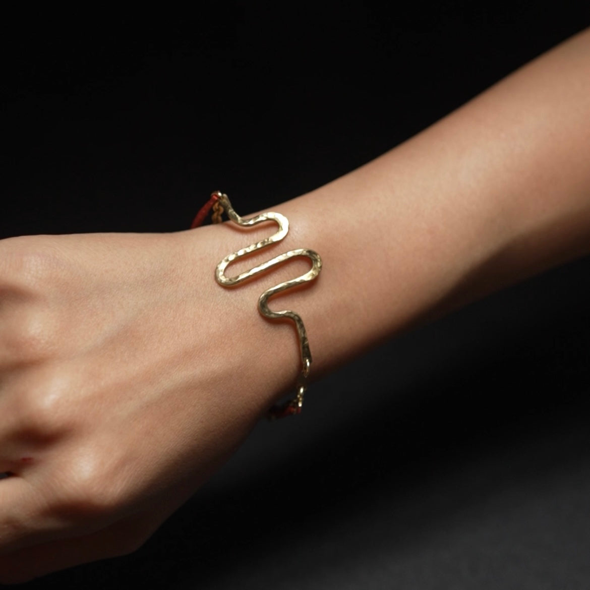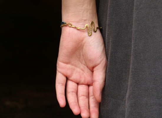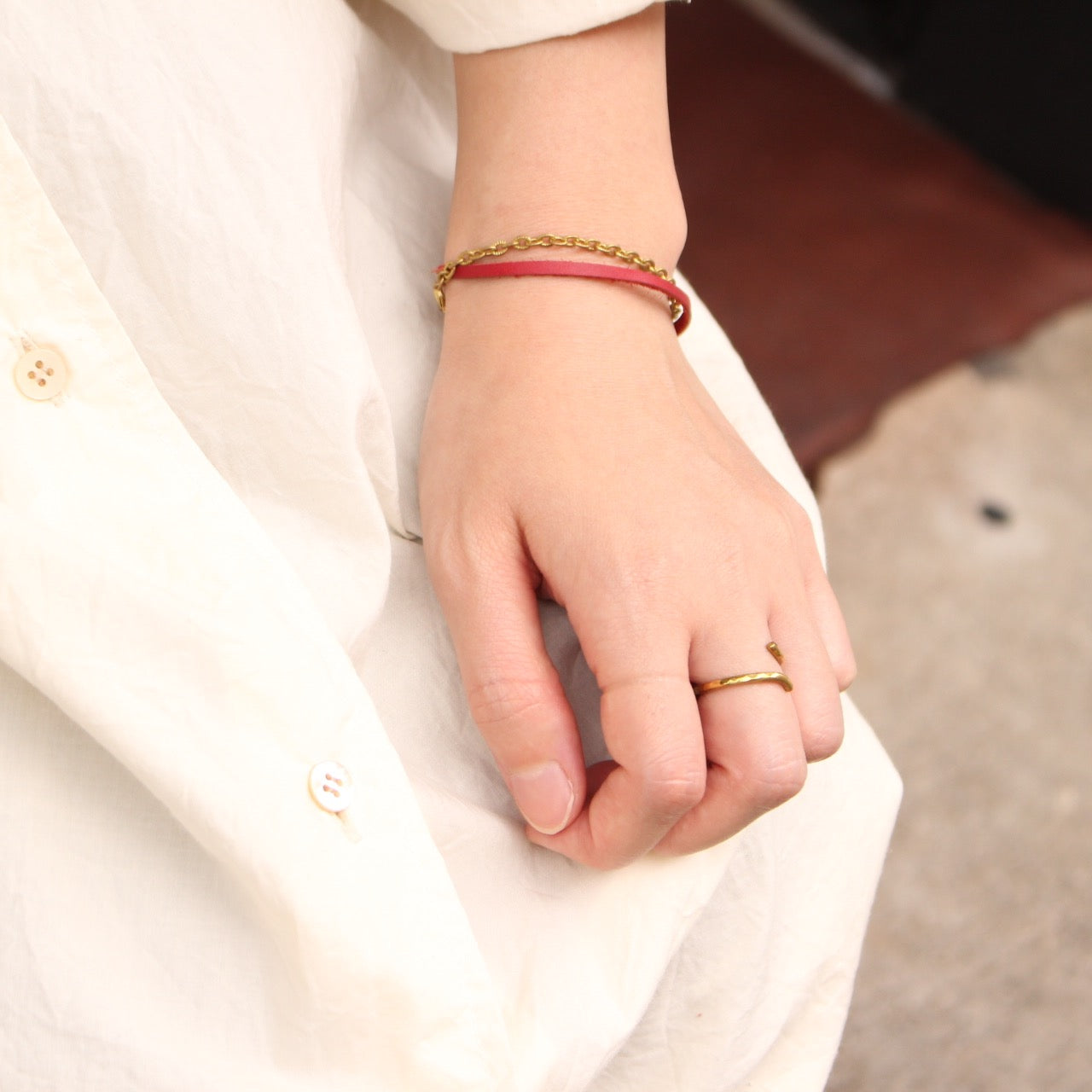 手首の動脈部分に真鍮(myaku)が来るのがポイントなので、動脈とmyakuを重ねておしゃれをお楽しみください。